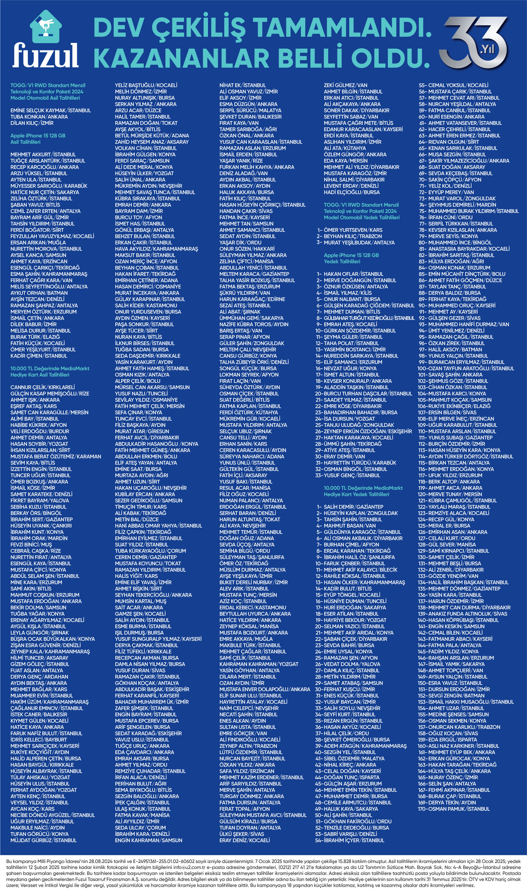 Çekiliş tekrarını Youtube kanalımızdan izleyebilirsiniz.